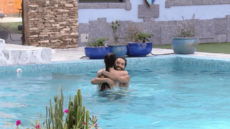 Emparedados na última disputa da edição, que vale uma vaga na grande final do reality global, os dois colocam roupas de banho e se preparam para um mergulho.