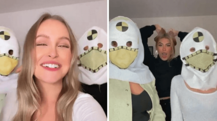 Carla, inclusive, usou essa roupa quando voltou de um paredão falso no BBB21, e acabou até ganhando dos fãs a fantasia. Logo depois, a dupla tira as máscaras e caem na risada ao aparecerem no vídeo da atriz.