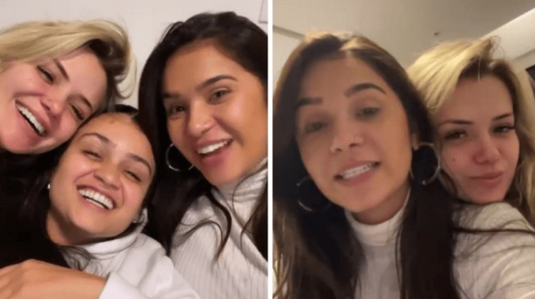 "Olha onde eu tô! Vocês estão falando que nós somos parecidas?", brinca a advogada. "E somos né?", afirma a cantora. "E somos lindas, né?", completa Gizelly Bicalho.