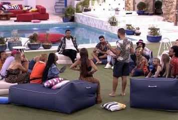 Os quatro semifinalistas do BBB21 se reúnem para comer juntos na cozinha da casa. Fiuk, que prepar...